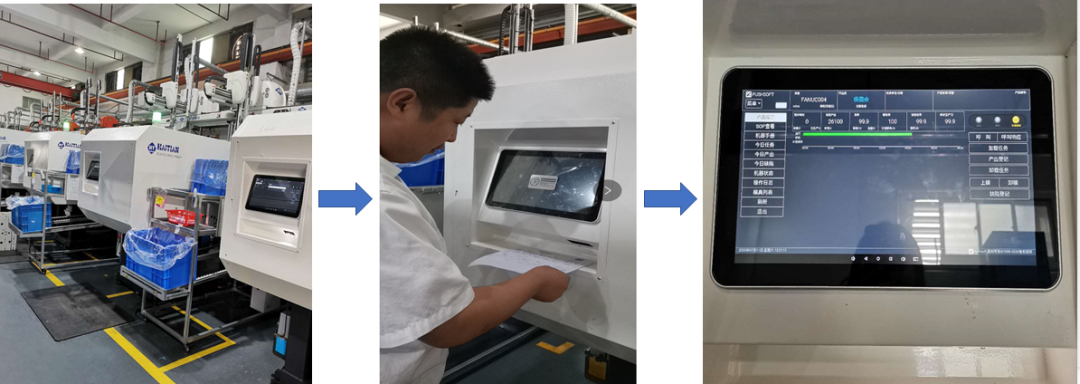 海汇车间工位机的使用包括:今日任务、电子SOP查阅、上模、卸模等。两大产线均部署使用。