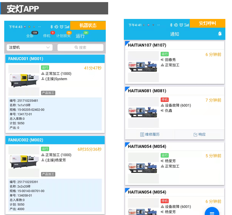 安灯呼叫信息及时推送至手机APP,呼叫以及响应时长等汇总在智能看板展示。