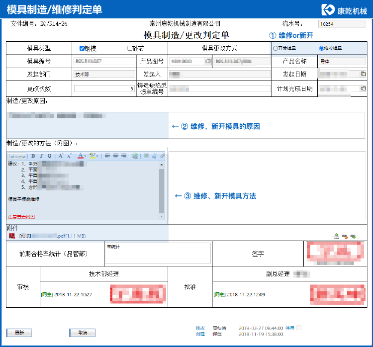 1、模具管理:对于铸造、机加企业来说,模具的管理非常重要,目前康乾的产品合格率是有了很明显的提高;