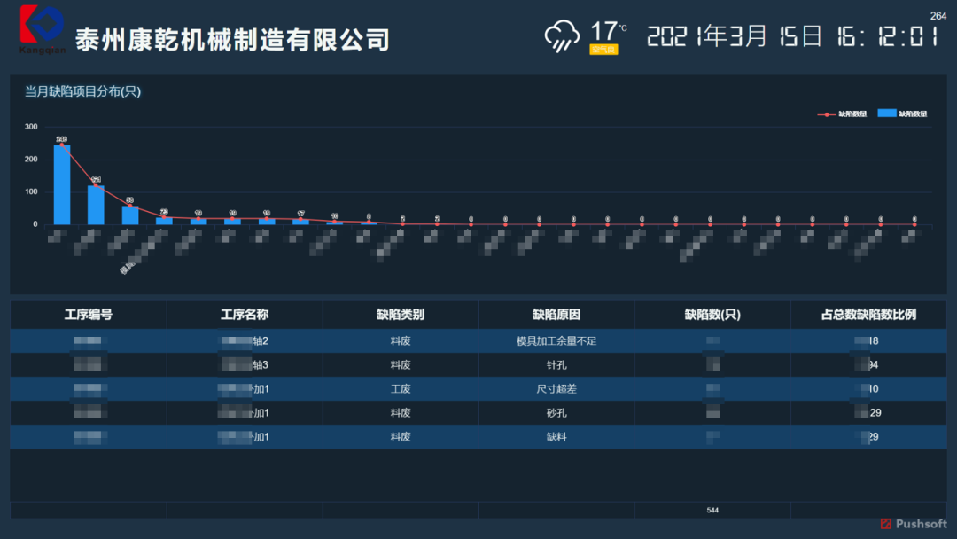 2、 缺陷集中发生工序,相应人员可以及时去分析原因并采取措施。