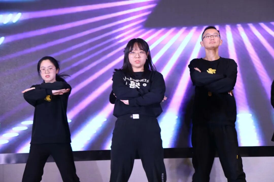 第一个开场节目就是技术部7位俊男靓女燃爆全场。统一的运动嘻哈服饰,摇动的韵律,绽放的青春。天呀,“你难道不来跟我们一起跳舞吗!”好吧,台下小女生们已经跃跃欲试的神情和小男生们随着旋律抖动的脚尖已经说明了一切。